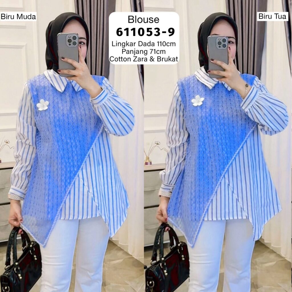 👗Blouse Salur Vertikal Brukat Simetris