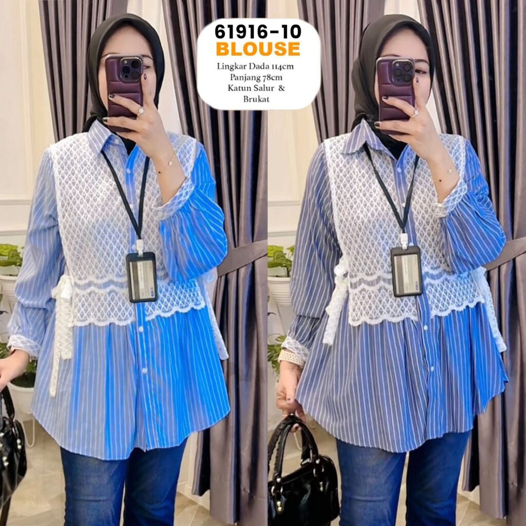 👗Blouse Salur Vertikal Rompi Renda