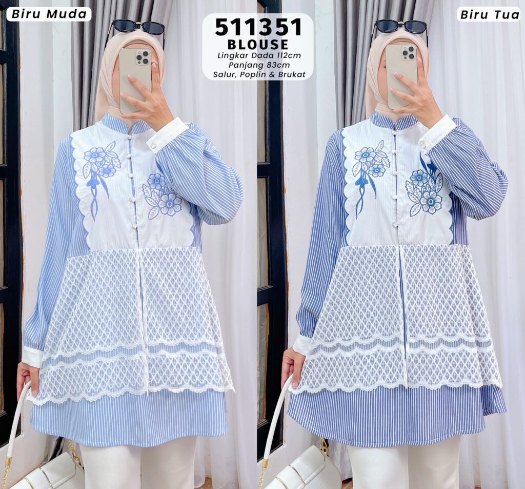 • Warna: Biru Muda & Biru Tua Kombinasi Putih