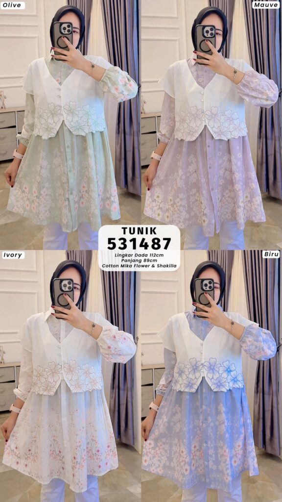 Tunik Muslimah 2in1 Rompi Tempel Bunga – Bahan Niagara & Katun Shakilla