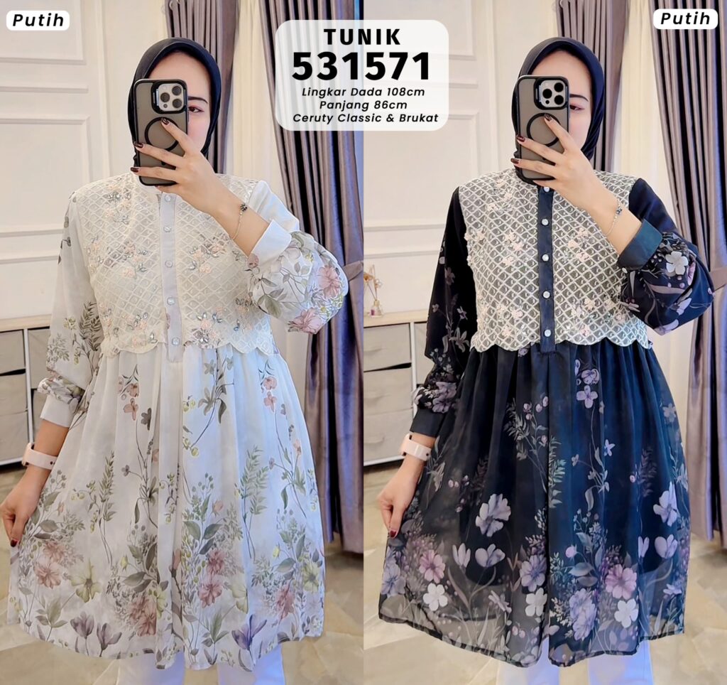 Tunik Muslim Wanita Ceruty Classic & Brukat Motif Bunga Elegan – Busui Friendly